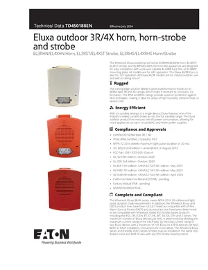 Datasheet for the Eaton Eluxa outdoor 3R/4X, published in 2024. Document No: TD450188EN, Rev: July 2024. 27 models including EL3RHN, EL4XHN, EL3RST and 24 additional variants. Engineering specifications, wiring diagrams, and mounting dimensions.
