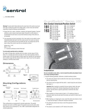 Installation Manual for the Edwards EST GuardSwitch Series 100, published in 2013. Document No: 11507, Rev: E. 34 models including 191-3Z-06K, 191-3Z-12K, 191-4Z-06K and 31 additional variants. Physical installation guide, backbox dimensions, and cabling specifications.
