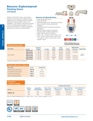 Manual for the Edwards EST 116 Series 12-48v Dc Xenon Strobe Catalog Page. 18 models including 116EXSTA-EK, 116EXSTB-EK, 116EXSTC-EK and 15 additional variants. Component descriptions, indicators and controls, and user interactions.