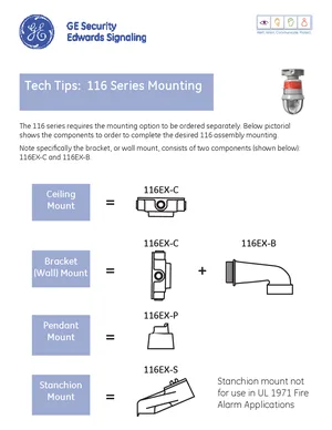Installation Manual for the Edwards EST 116 Series Mounting Configuration. 5 models including 116, 116EX-C, 116EX-B and 2 additional variants. Physical installation guide, backbox dimensions, and cabling specifications.