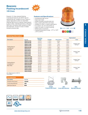 Datasheet for the Edwards EST 125 Class. 20 models including 125INCFA120A, 125INCFB120A, 125INCFC120A and 17 additional variants. Engineering specifications, wiring diagrams, and mounting dimensions.