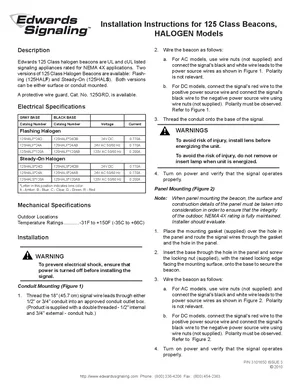 Installation Manual for the Edwards EST 125 Class Halogen Beacons, published in 2010. Document No: 3101650, Rev: 3. Models 125HALF and 125HALS. Physical installation guide, backbox dimensions, and cabling specifications.