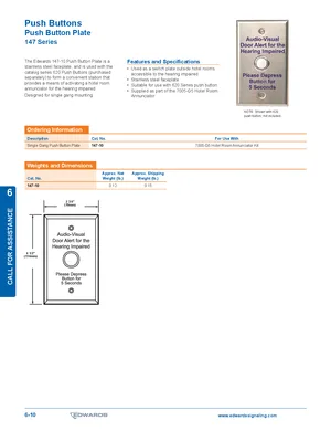 Datasheet for the Edwards EST 147 Series Push Button Plate. Models 147-10, 620 and 7005-G5. Engineering specifications, wiring diagrams, and mounting dimensions.