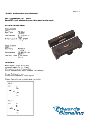 Installation Manual for the Edwards EST 171-4Z-D4, published in 2015. Model 171-4Z-D4. Mounting instructions, wiring diagrams, and system power-up procedures.
