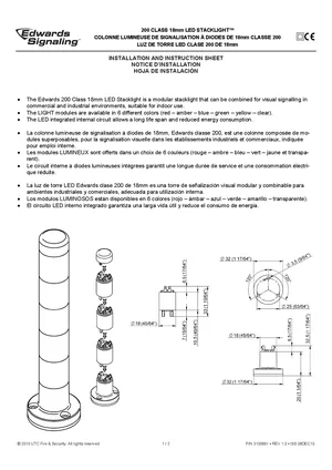 Installation Manual for the Edwards EST 200 Class 18mm LED STACKLIGHT, published in 2010. Document No: 3100881, Rev: 1.0. Model 200 Class. Physical installation guide, backbox dimensions, and cabling specifications.