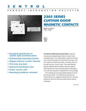 Datasheet for the Edwards EST 2302 Series Curtain Door Contacts, published in 1998. Document No: C-3516-FLG5K-0798. Models 2302 and 2304. Engineering specifications, wiring diagrams, and mounting dimensions.