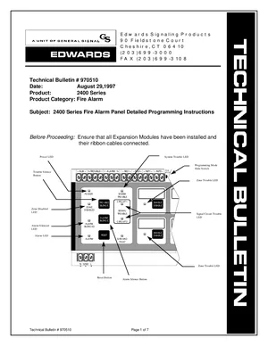 Programming Manual for the Edwards EST 2400 Series, published in 1997. Document No: 970510. Model 2400 Series. Database setup, feature customization, and password management.