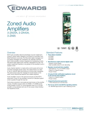 Datasheet for the Edwards EST 3-ZA20A, 3-ZA40A and 3-ZA95, published in 2022. Document No: E85014-0017, Rev: Issue 2.3. 6 models including 3-ZA20A, 3-ZA40A, 3-ZA95 and 3 additional variants. Engineering specifications, wiring diagrams, and mounting dimensions.