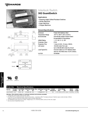 Datasheet for the Edwards EST 302 GuardSwitch. Models 302 GuardSwitch, 302-DT-06A and 300 Series. Detailed technical specifications, electrical ratings, and agency listings.