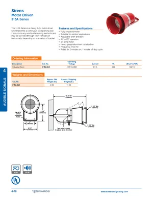 Datasheet for the Edwards EST 315A Series Sirens. Model 315A-AH. Engineering specifications, wiring diagrams, and mounting dimensions.
