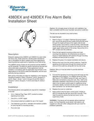 Installation Manual for the Edwards EST 438DEX and 439DEX, published in 2011. Document No: P-047550-0587, Rev: 6.0. 11 models including 438DEX, 439DEX, 438DEX-6N5 and 8 additional variants. Mounting instructions, wiring diagrams, and system power-up procedures.