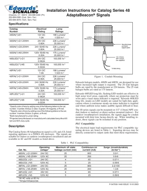 Installation Manual for the Edwards EST 48 Series AdaptaBeacon Signals, published in 2003. Document No: P-047550-1448, Rev: 10. 4 models including 48SIN, 48FIN, 48SLED and 1 additional variants. Mounting instructions, wiring diagrams, and system power-up procedures.