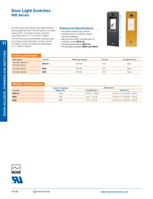 Datasheet for the Edwards EST 500 Series Door Light Switches. Models 501A-G, 502A and 503A. Detailed technical specifications, electrical ratings, and agency listings.
