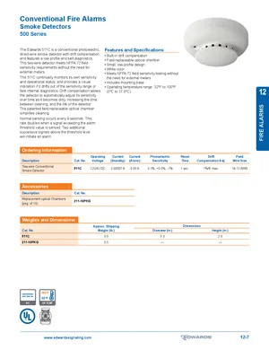 Datasheet for the Edwards EST 511C. Models 511C and 211-10PKG. Product features, environmental operating limits, and compatibility data.