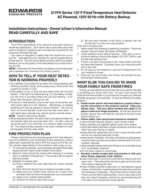 Installation and Operations Manual for the Edwards EST 517FH, published in 1999. Document No: 550-0175-000. Model 517FH. System installation procedures and daily operating instructions.