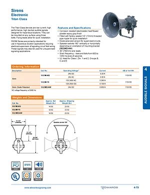 Datasheet for the Edwards EST 5523M Series Electronic Sirens. Models 5523M-AQ, 5523M-Y6 and 5523MD-AW. Engineering specifications, wiring diagrams, and mounting dimensions.