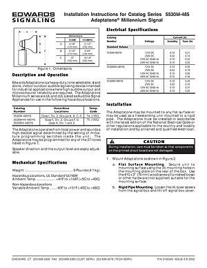 Installation Manual for the Edwards EST 5530M-485 Series Adaptatone, published in 2002. Document No: 3100345, Rev: 2. Models 5530M-485Y6, 5530MHV-485Y6 and 5530MV-485Y6. Mounting instructions, wiring diagrams, and system power-up procedures.