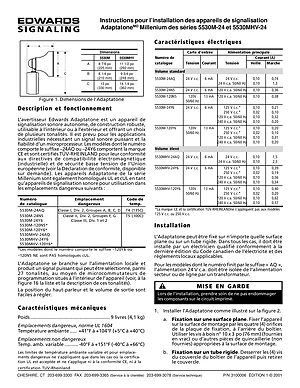 Installation Manual for the Edwards EST 5530M/5530MHV (French), published in 2001. Document No: 3100006, Rev: 1. Models 5530M-24 and 5530MHV-24. Hardware installation, terminal connections, and environmental requirements.