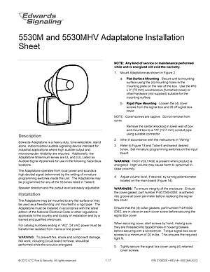 Installation Manual for the Edwards EST 5530M and 5530MHV, published in 2010. Document No: 3100006, Rev: 4. Models 5530M and 5530MHV. Physical installation guide, backbox dimensions, and cabling specifications.