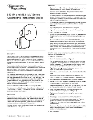 Installation Manual for the Edwards EST 5531M/5531MV Series Adaptatone, published in 2015. Document No: 3100008-EN, Rev: 06. 12 models including 5531M-24AQ, 5531M-24N5, 5531M-120N5 and 9 additional variants. Physical installation guide, backbox dimensions, and cabling specifications.