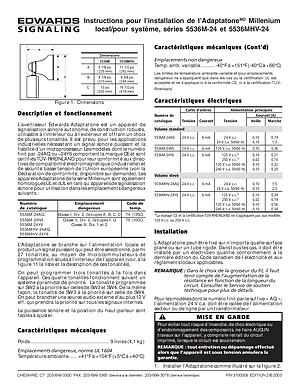 Installation Manual for the Edwards EST 5536M/5536MHV Adaptatone (French), published in 2003. Document No: 3100009, Rev: 2. 5 models including 5536M-24AQ, 5536M-24N5, 5536M-24Y6 and 2 additional variants. Hardware installation, terminal connections, and environmental requirements.