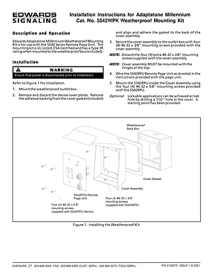 Installation Manual for the Edwards EST 5542WPK, published in 2001. Document No: 3100275, Rev: 1. Model 5542WPK. Physical installation guide, backbox dimensions, and cabling specifications.