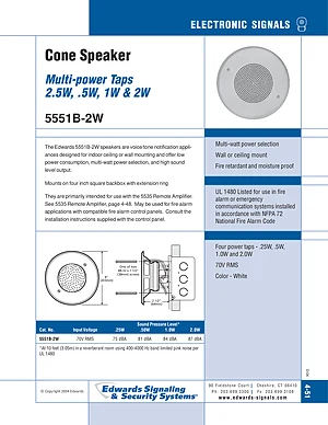 Datasheet for the Edwards EST 5551B-2W, published in 2004. Document No: D-04. Model 5551B-2W. Product features, environmental operating limits, and compatibility data.