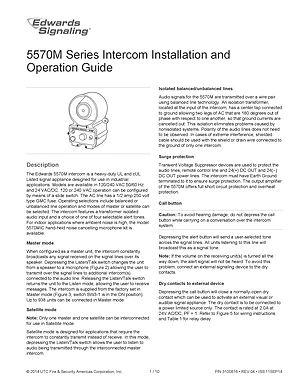 Installation and Operations Manual for the Edwards EST 5570M Series Intercom, published in 2014. Document No: 3100816, Rev: 04. Models 5570M-AQ and 5570M-NR5. Hardware mounting, wiring, and user system management.