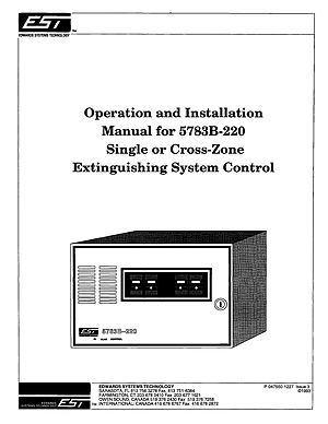 Installation and Operations Manual for the Edwards EST 5783B-220, published in 1993. Document No: P 047550 1227, Rev: 3. Model 5783B-220. Complete setup guide and operational workflows.