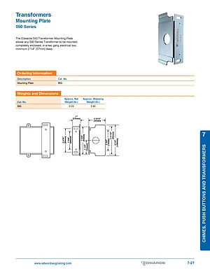 Datasheet for the Edwards EST 593 Mounting Plate. Document No: 7-27. Model 593. Detailed technical specifications, electrical ratings, and agency listings.
