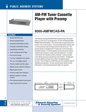 Datasheet for the Edwards EST 6000-AMFMCAS-PA, published in 2004. Document No: 17-10. Model 6000-AMFMCAS-PA. Product features, environmental operating limits, and compatibility data.