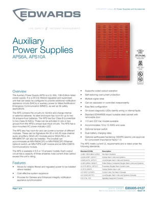 Datasheet for the Edwards EST APS6A and APS10A, published in 2024. Document No: E85005-0127, Rev: Issue 1.4. 4 models including APS6A, APS10A, APS6A/230 and 1 additional variants. Engineering specifications, wiring diagrams, and mounting dimensions.