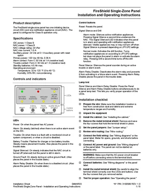 Installation and Operations Manual for the Edwards EST FireShield Single-Zone Panel, published in 2003. Document No: 3100589, Rev: 1.0. Model FireShield. Complete setup guide and operational workflows.