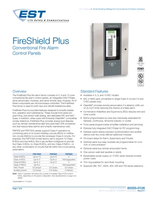 Datasheet for the Edwards EST FSP1004, FSP502, and FSP302, published in 2013. Document No: 85005-0126, Rev: Issue 2.1. 33 models including FSP1004, FSP1004-2, FSP502 and 30 additional variants. Engineering specifications, wiring diagrams, and mounting dimensions.