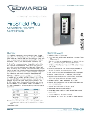 Datasheet for the Edwards EST FSP502 and FSP1004, published in 2020. Document No: E85005-0126, Rev: Issue 2.1. 39 models including FSP502, FSP1004, FSP502-2 and 36 additional variants. Detailed technical specifications, electrical ratings, and agency listings.