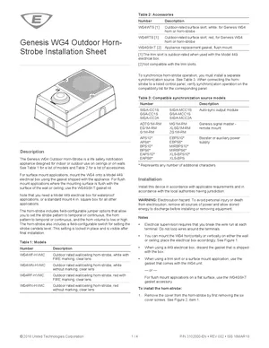 Installation Manual for the Edwards EST Genesis WG4 Outdoor Horn-Strobe, published in 2018. Document No: 3102000-EN, Rev: 002. 32 models including WG4WF-HVMC, WG4WN-HVMC, WG4RF-HVMC and 29 additional variants. Physical installation guide, backbox dimensions, and cabling specifications.