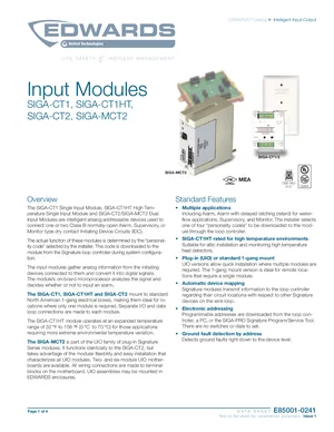 Datasheet for the Edwards EST SIGA-CT1, SIGA-CT1HT, SIGA-CT2, SIGA-MCT2, published in 2018. Document No: E85001-0241, Rev: 1. 4 models including SIGA-CT1, SIGA-CT1HT, SIGA-CT2 and 1 additional variants. Detailed technical specifications, electrical ratings, and agency listings.