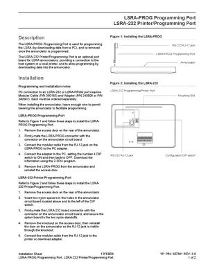 Installation Manual for the Edwards EST LSRA-PROG and LSRA-232, published in 2009. Document No: 387361, Rev: 3.0. Models LSRA-PROG and LSRA-232. Hardware installation, terminal connections, and environmental requirements.