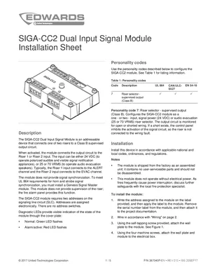 Installation Manual for the Edwards EST SIGA-CC2, published in 2017. Document No: 387040P-EN, Rev: 013. Model SIGA-CC2. Physical installation guide, backbox dimensions, and cabling specifications.