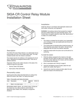 Installation Manual for the Edwards EST SIGA-CR, published in 2017. Document No: 387023P-EN, Rev: 014. Model SIGA-CR. Hardware installation, terminal connections, and environmental requirements.