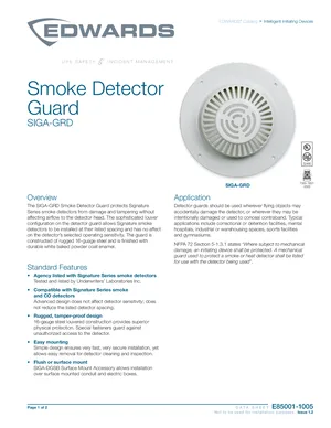 Datasheet for the Edwards EST SIGA-GRD, published in 2020. Document No: E85001-1005, Rev: Issue 1.2. 14 models including SIGA-GRD, SIGA-DGSB, SIGA-DGMF and 11 additional variants. Engineering specifications, wiring diagrams, and mounting dimensions.