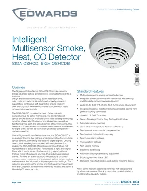 Datasheet for the Edwards EST SIGA-OSHCD and SIGA-OSHCDB, published in 2020. Document No: E85001-1004, Rev: Issue 1.4. 16 models including SIGA-OSHCD, SIGA-OSHCDB, SIGA-SB and 13 additional variants. Engineering specifications, wiring diagrams, and mounting dimensions.