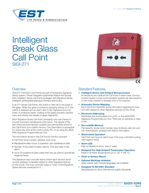 Datasheet for the Edwards EST SIGI-271, published in 2013. Document No: 85001-0349, Rev: 2. Model SIGI-271. Engineering specifications, wiring diagrams, and mounting dimensions.