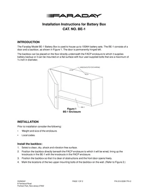 Installation Manual for the Faraday BE-1. Document No: 315-033917FA-2, Rev: 2. Model BE-1. Hardware installation, terminal connections, and environmental requirements.