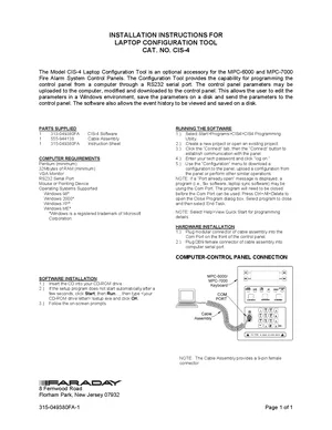 Installation Manual for the Faraday CIS-4. Document No: 315-049380FA-1, Rev: FA-1. Models CIS-4, MPC-6000 and MPC-7000. Physical installation guide, backbox dimensions, and cabling specifications.