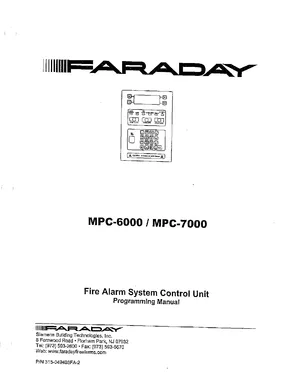 Programming Manual for the Faraday MPC-6000 and MPC-7000. Document No: 315-049403FA-2, Rev: 2. 18 models including MPC-6000, MPC-7000, 8700-S and 15 additional variants. Software programming guide, option settings, and network configuration.
