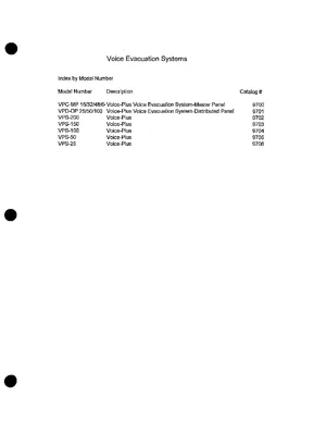 Datasheet for the Faraday Voice-Plus Voice Evacuation Systems, published in 2005. Document No: 9700. 53 models including VPC-MP, VPD-DP, VPS-200 and 50 additional variants. Detailed technical specifications, electrical ratings, and agency listings.