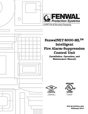 Installation and Operations Manual for the FenwalNET 8000-ML, published in 2011. Document No: 06-237041-001, Rev: AB. Model FenwalNET 8000-ML. Hardware mounting, wiring, and user system management.