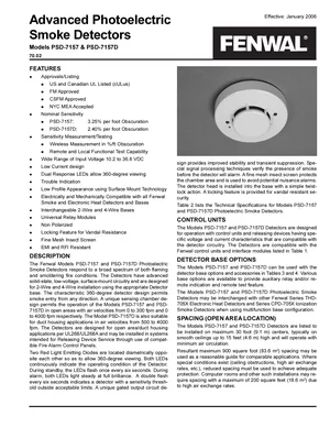 Datasheet for the Fenwal PSD-7157 and PSD-7157D, published in 2006. Document No: 70.02, Rev: AC. 16 models including PSD-7157, PSD-7157D, CPD-7054 and 13 additional variants. Engineering specifications, wiring diagrams, and mounting dimensions.