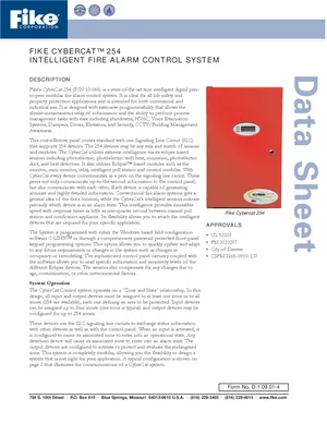 Datasheet for the Fike CyberCat 254, published in 2005. Document No: D.1.09.01-4. 47 models including 10-066, 10-2525, 10-2528 and 44 additional variants. Detailed technical specifications, electrical ratings, and agency listings.